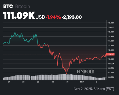 As of press time, Bitcoin was trading at $111,076, up nearly 1% in the past 24 hours but down about 2% on the weekly timeframe.