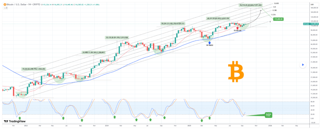 Based on Fibonacci extensions and the current cycle’s trajectory, the $175,000 target is projected for early December 2025.