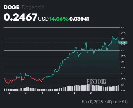 This technical setup coincides with strengthening fundamentals that could further fuel Dogecoin’s price growth. For instance, the first U.S. Dogecoin ETF, the Rex-Osprey DOJE fund, is set to debut on September 11, 2025, under the stricter Investment Company Act of 1940.