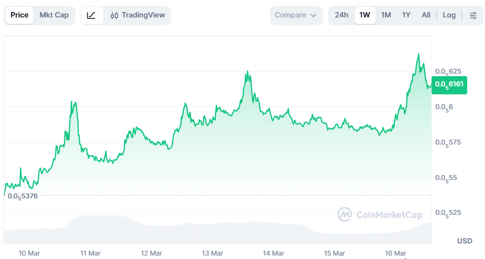 SHIB price one-week chart. Source: CoinMarketCap