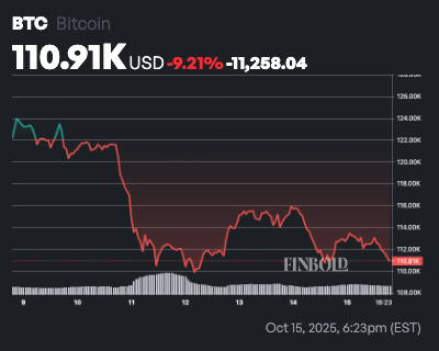 As of press time, the leading digital currency was trading at $110,889, down 0.5% in the past 24 hours and 10% lower on the week.