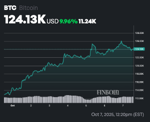 At the time of writing, Bitcoin is consolidating around $124,129, after rallying about 0.12% in the past 24 hours. On the weekly timeframe, the asset is up nearly 10%.