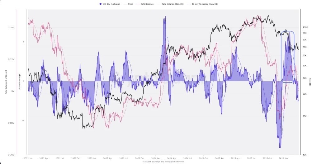 Bitcoin whale 30-day % change for 12 months. Source: CryptoQuant