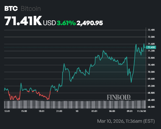 BlackRock’s iShares Bitcoin Trust ETF (IBIT) opened this week on Monday with a net cash inflow as Bitcoin (BTC) price rebounded above $71,000 on Tuesday, March 10.