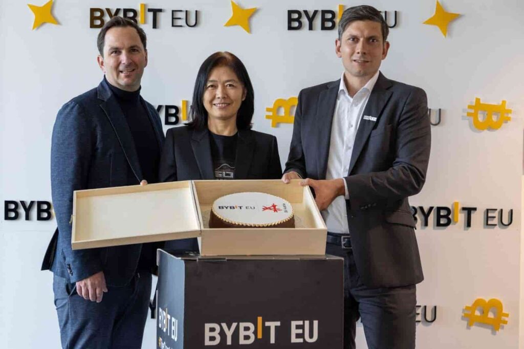 Christian Scherer, CEO of Ski Austria; Helen Liu, Co-CEO of Bybit; and Georg Harer, Managing Director of Bybit EU. Source: Bybit EU