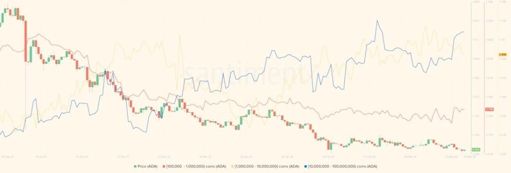 Cardano holders analysis between September 2025 and March 2026. Source: Santiment