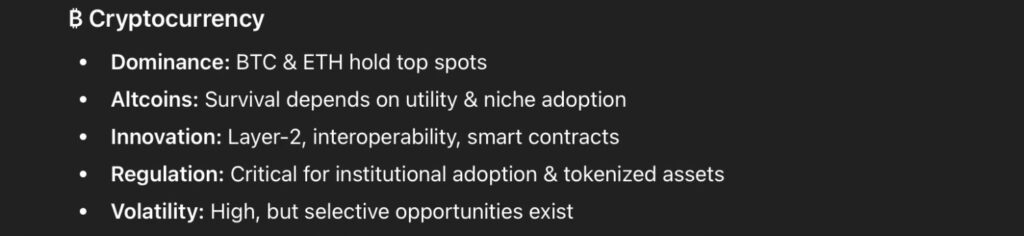 Overall, ChatGPT investment predictions for 2026 point to a market driven by fundamentals and innovation. The AI expects a “bullish but selective” environment, where diversification, earnings quality, and long-term planning matter more than broad risk-on positioning, although volatility risk remains, especially in crypto.