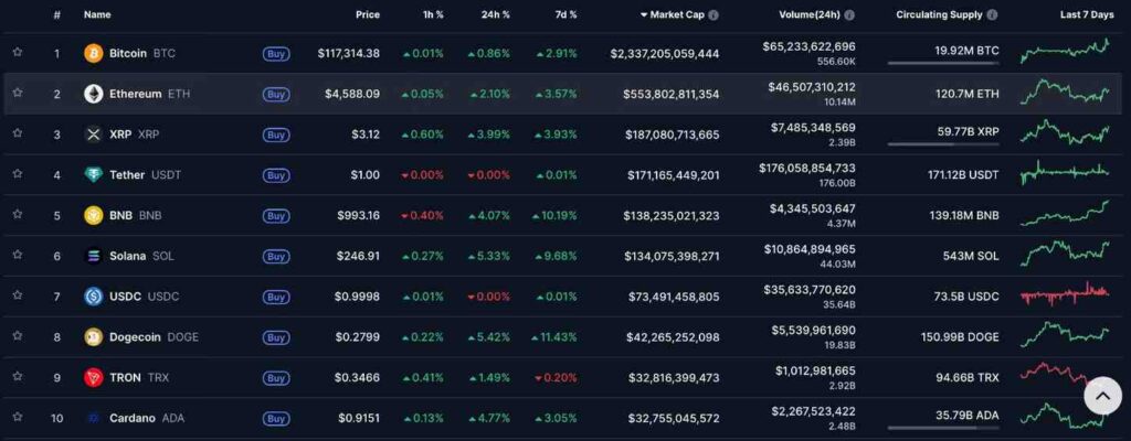 Top 10 cryptocurrencies. Source: CoinMarketCap