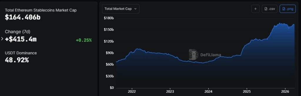 Total stablecoins market cap on Ether. Source: DeFiLlama