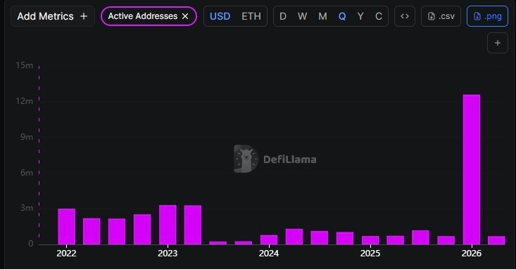 Ether active addresses per quarter. Source: DeFiLlama