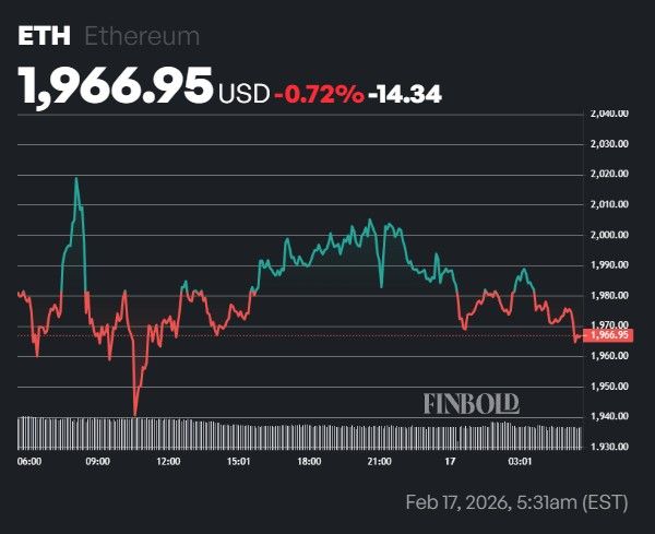 At the time of writing, Ethereum was trading at $1,966, down 0.72% on the daily chart, while the total crypto market capitalization slipped 0.97% to $2.34 trillion.