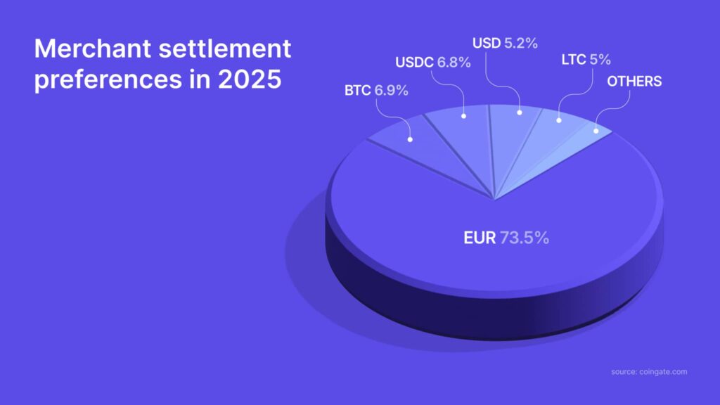 The report also examined how merchants handle the Litecoin they collect. In 2025, 5% of merchants chose to retain LTC, the highest proportion since 2022. The majority still opted to convert, most commonly into euros (73.5%), followed by BTC (6.9%), USDC (6.8%), and USD (5.2%).