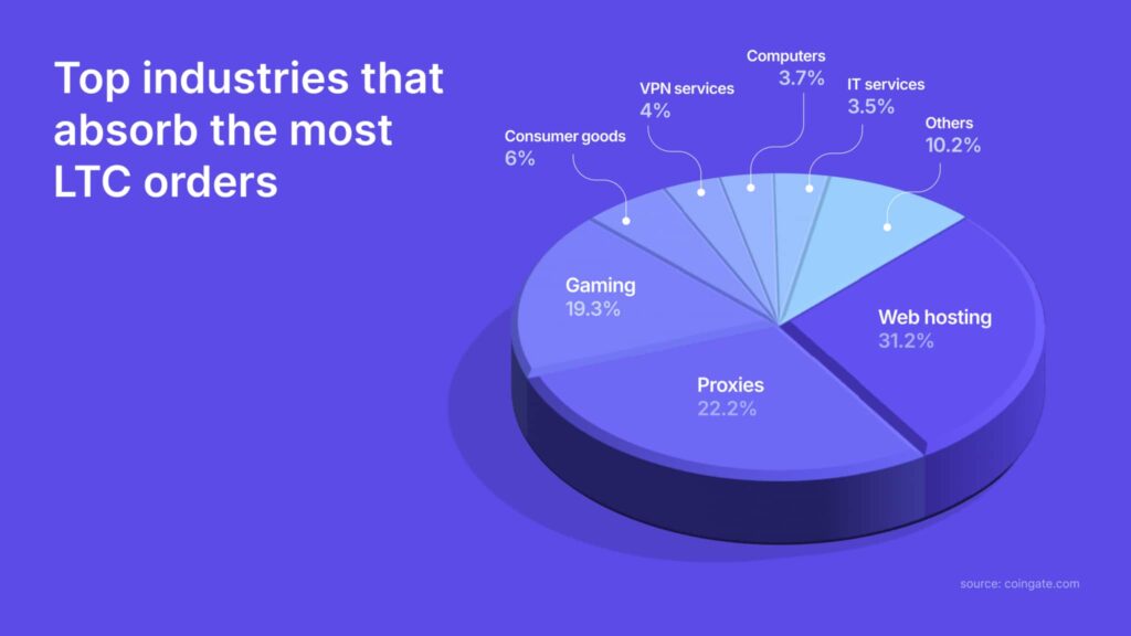 Top industries that absorb the most LTC orders. Source: CoinGate