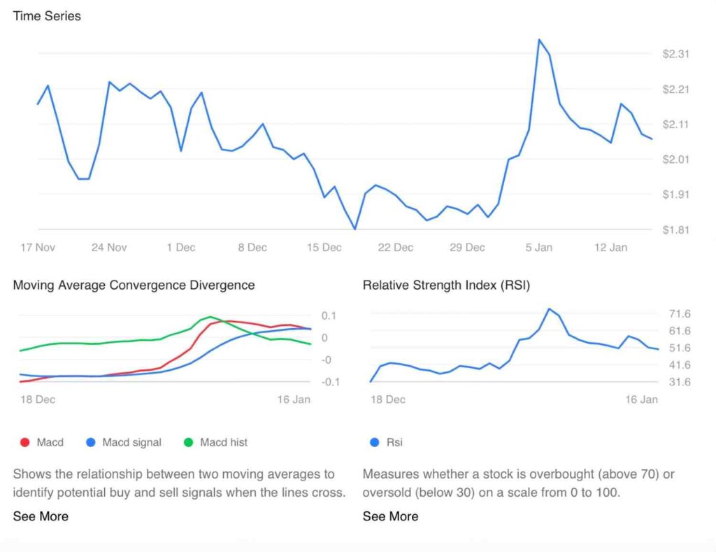 Claude Sonnet and Gemini gave the most bullish forecast, both projecting a potential 4.37% rally and a price of $2.15, while ChatGPT suggested the price could go down 0.49%, eventually trading at $2.05.