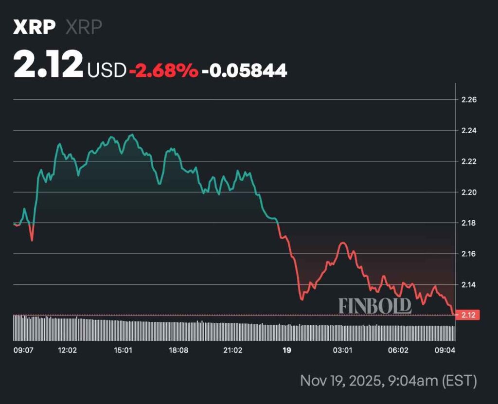 Improving trader sentiment and regulatory tailwinds helped XRP surge more than 5% following the move. However, the price has fallen again since, trading at $2.12 a day later at the time of writing, Wednesday, November 19, down 2.68%.