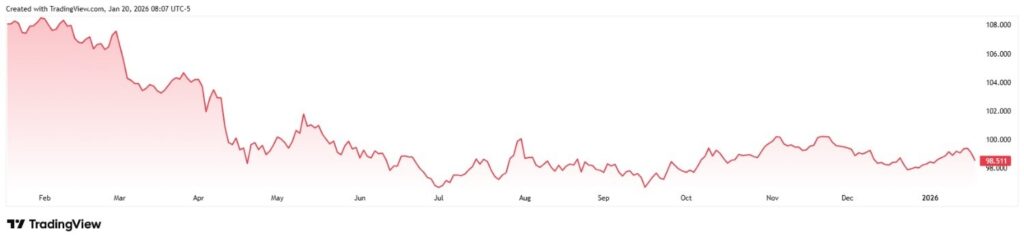 DXY 12-month chart. Source: TradingView