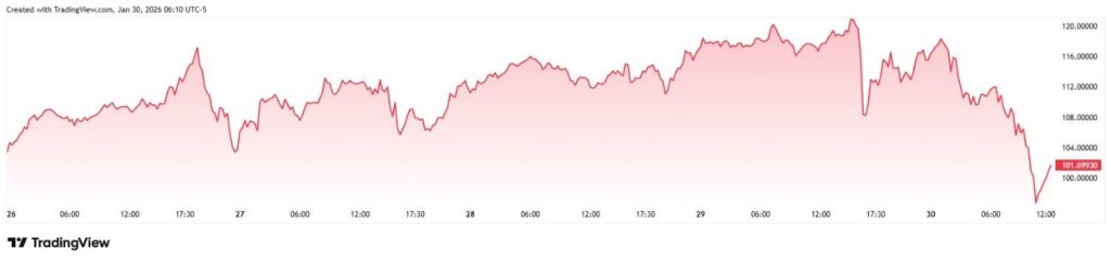 Deepening the new link, it is noteworthy that the argent metal also suffered a notable crash on January 29, falling from $120 per ounce to $101 per ounce.