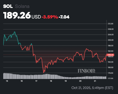 By press time, Solana was trading at $188.94, down 1.3% in the past 24 hours, while on the weekly chart the token is down 3.5%.