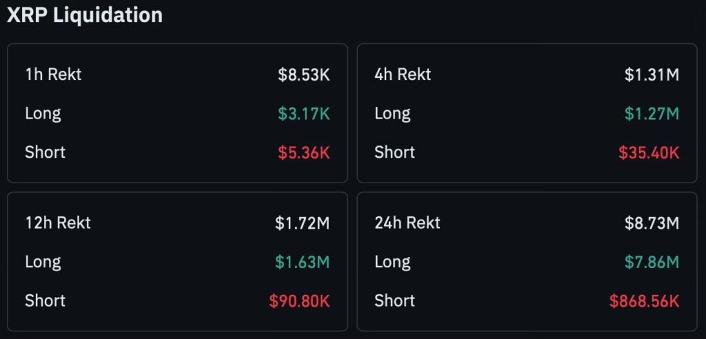 Liquidations such as these occur when leveraged traders are forced to close their positions due to price downswings, causing their margin to fall below required levels. Simply put, bullish traders that bet on an XRP price rebound were wiped out as prices slid lower, amplifying the already high selling pressure in the process.