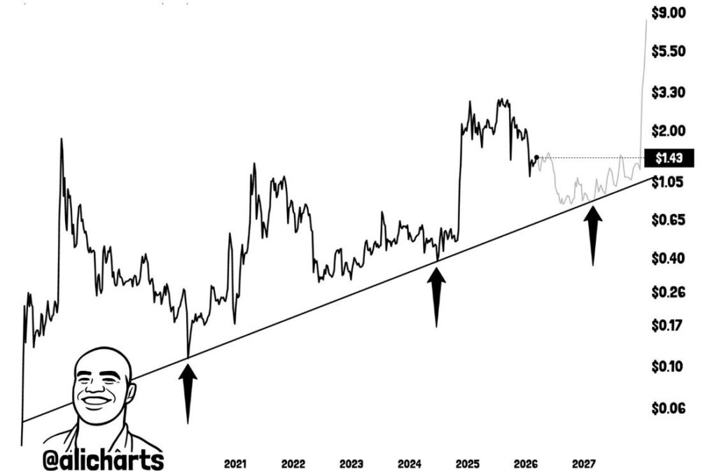 “This trendline could offer a strong buying opportunity for XRP,” Martinez stated.